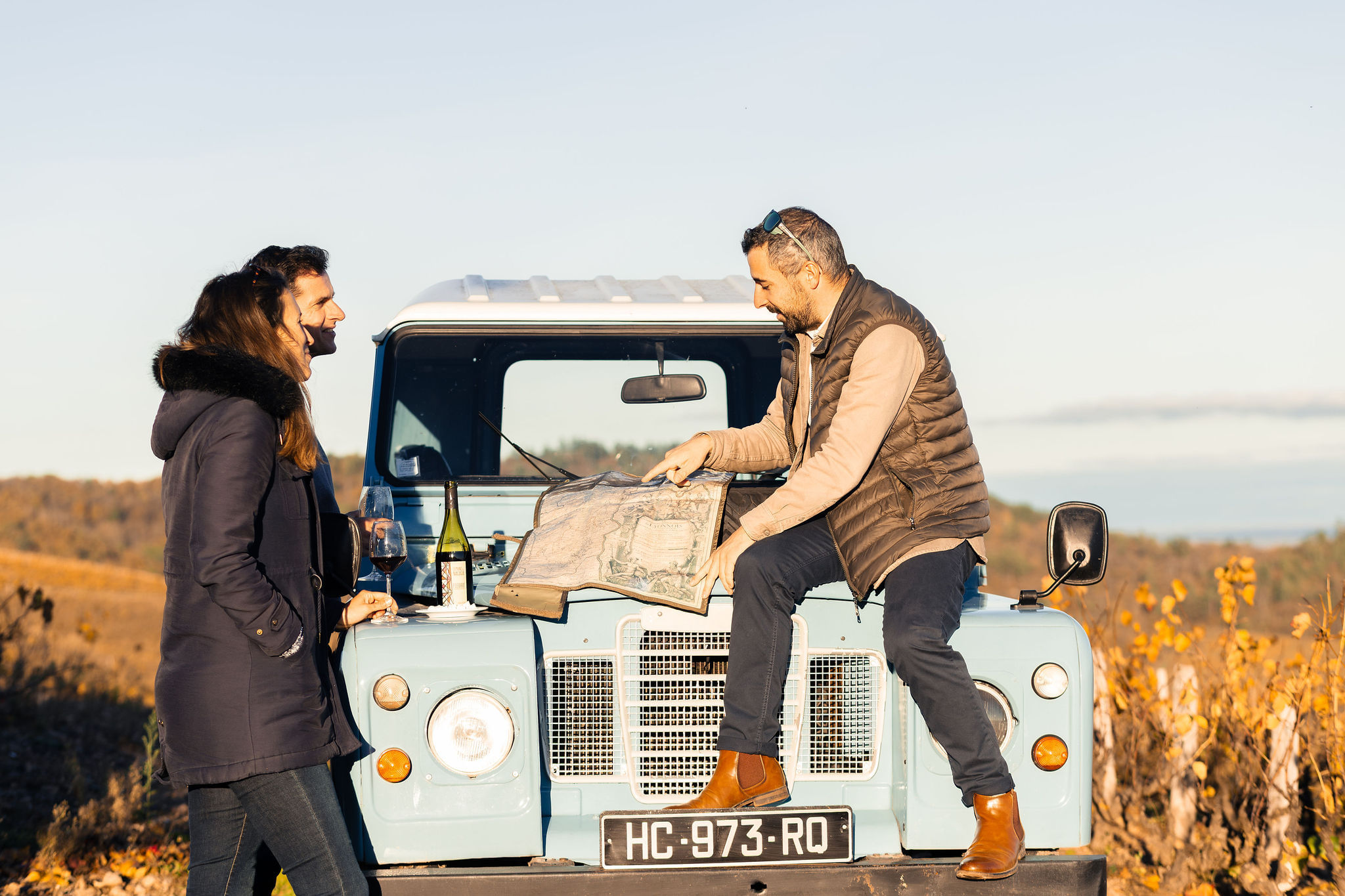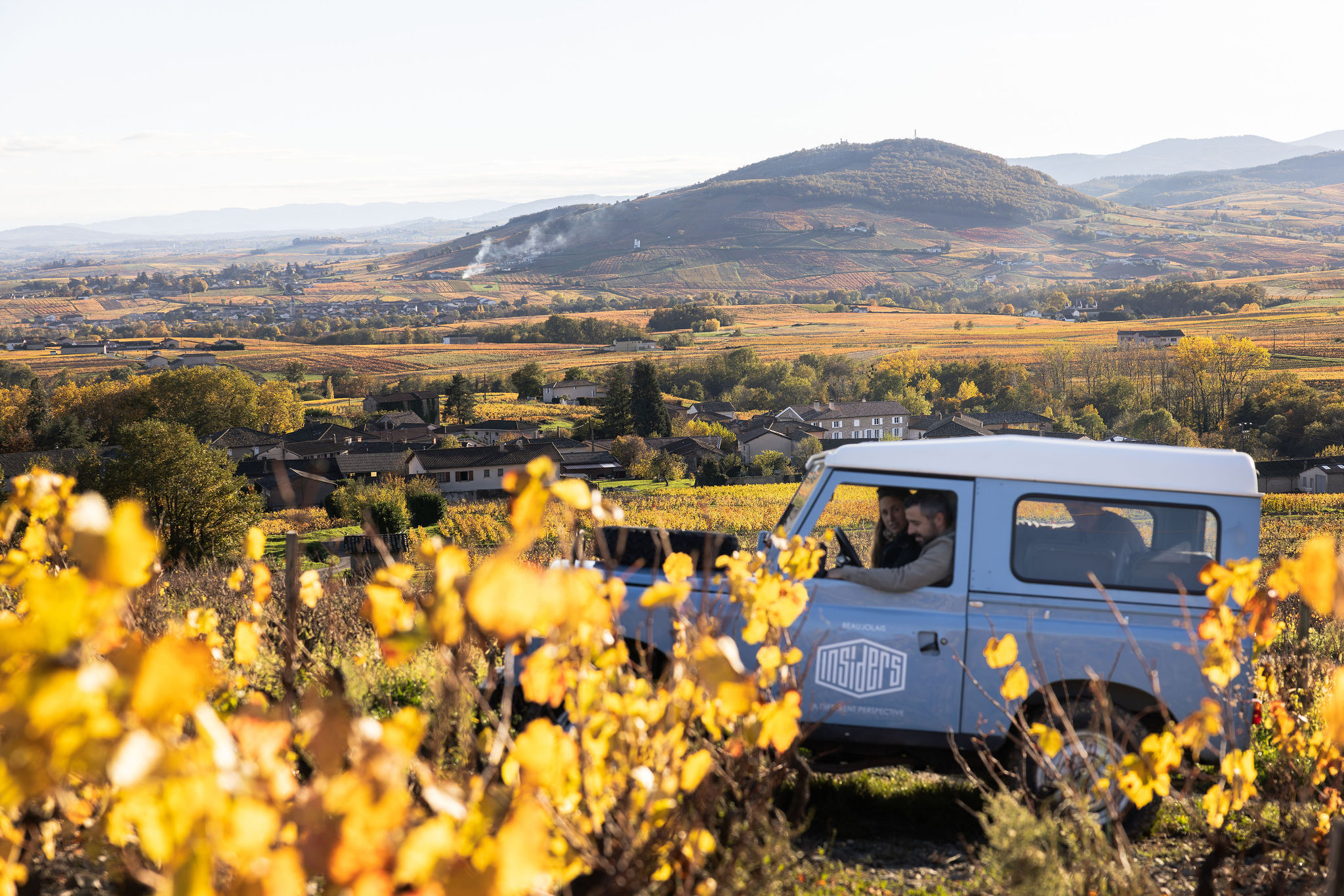 Une matinée d’hiver dans le Beaujolais à bord d’un Land Rover vintage. Domaine viticole, vin chaud et mâchon : tout l’esprit du Beaujolais. 400€ pour 1 à 3 pers., 100€ par pers. en plus..